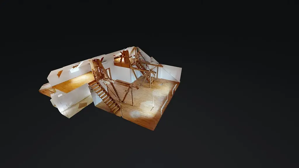 Dvě spací galerie (12,36 m²): Praktické nástavby přístupné po dřevěném schodišti, které efektivně využívají vysoké stropy a mohou sloužit jako ložnice nebo úložné prostory.