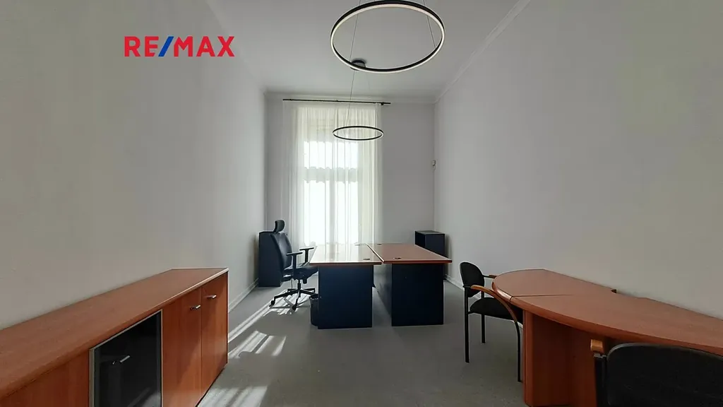 Celková plocha kanceláří je 69m2 (místnost 1: 24,1m2, místnost 2: 23,5m2, místnost 3: 21,4m2). Nachází se v prvním patře cihlového domu s reprezentativními prostory. K dispozici je recepce, kuchyňka, toalety a také pronájem zasedacíh místností (podle počtu jednajících /výběr ze čtyř typů/dle dohody, pronájem je zpoplatněn ceníkem s hodinovou sazbou). Na patře je klidný provoz advokátní kanceláře.