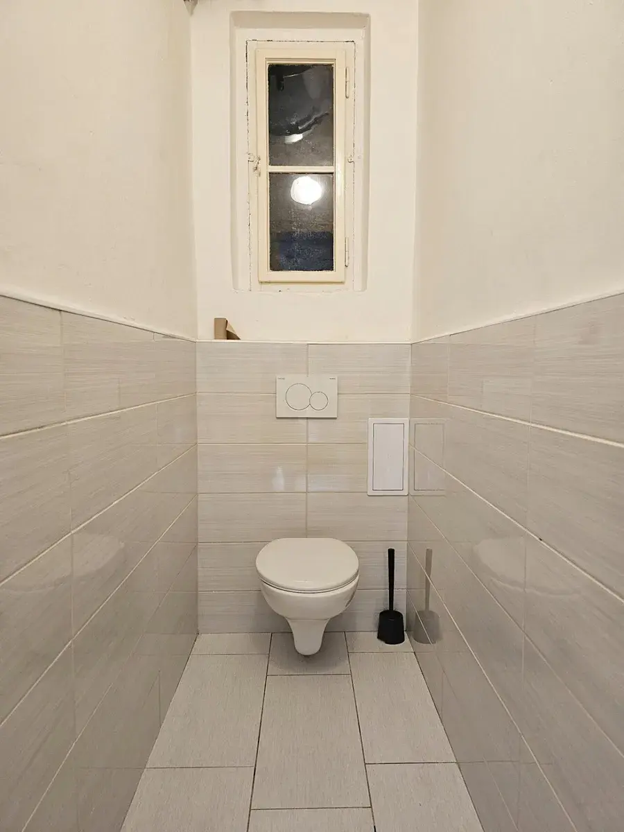 V bytě se nachází jeden velký pokoj (24 m2) + pokoj s kuchyňským koutem (23 m2, linka se dřezem, el. troubou, digestoří, sklokeramickou varnou deskou, myčkou a místem na pračku ) + koupelna se sprchovým koutem + samostatné WC + prostorná předsíň.