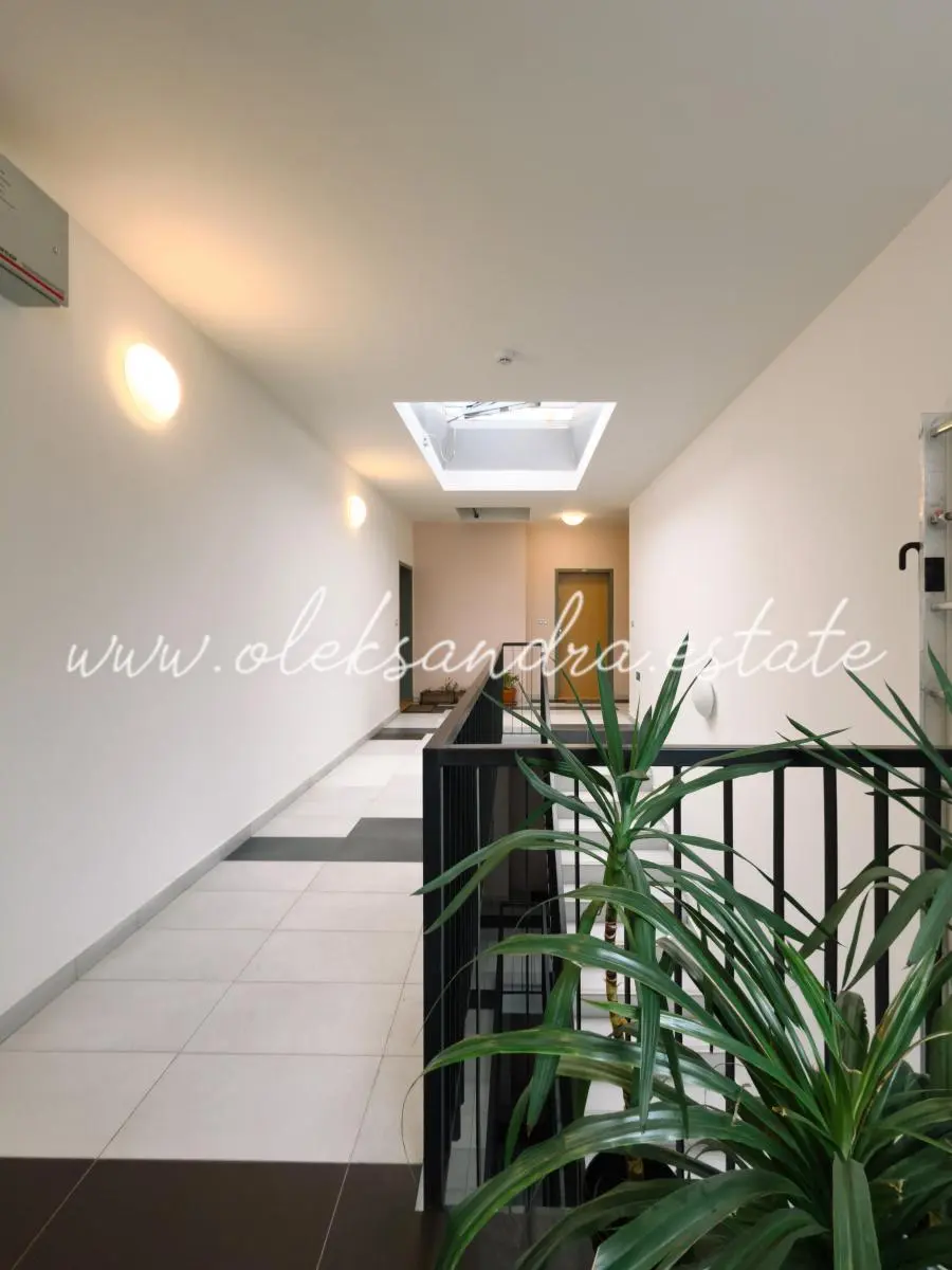 Byt je vybaven venkovními žaluziemi na všech oknech s dálkovým ovládáním, což zajišťuje maximální komfort i regulaci teploty v letních měsících. Součástí jsou také vestavěné skříně a knihovna s pracovním stolem vyrobené na míru.