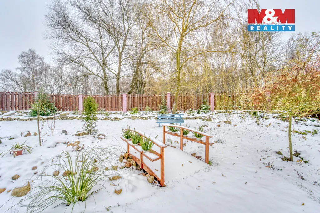 Rozsáhlý pozemek nabízí upravené travnaté plochy, okrasné dřeviny a dostatek prostoru pro odpočinek i soukromí. Součástí je venkovní bazén a soukromý rybník.