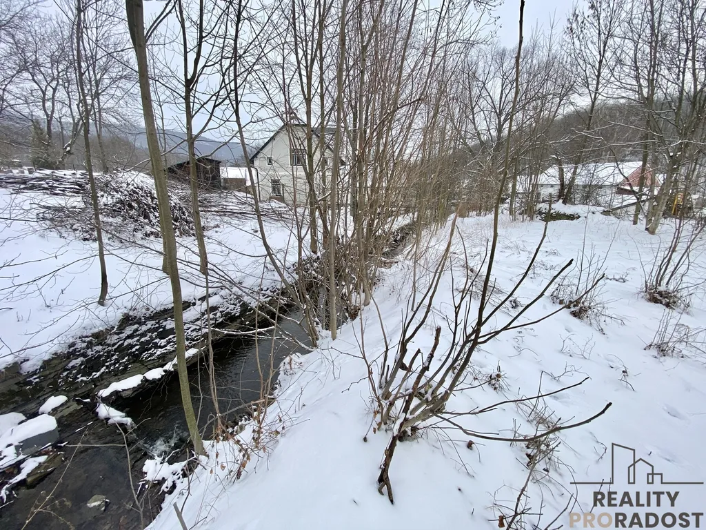 Pozemek má výměru 723 m2, je rovinatý, oplocený a jeho součástí je přírodní potok, který protéká přes pozemek a dodává tomuto místu jedinečnou atmosféru.