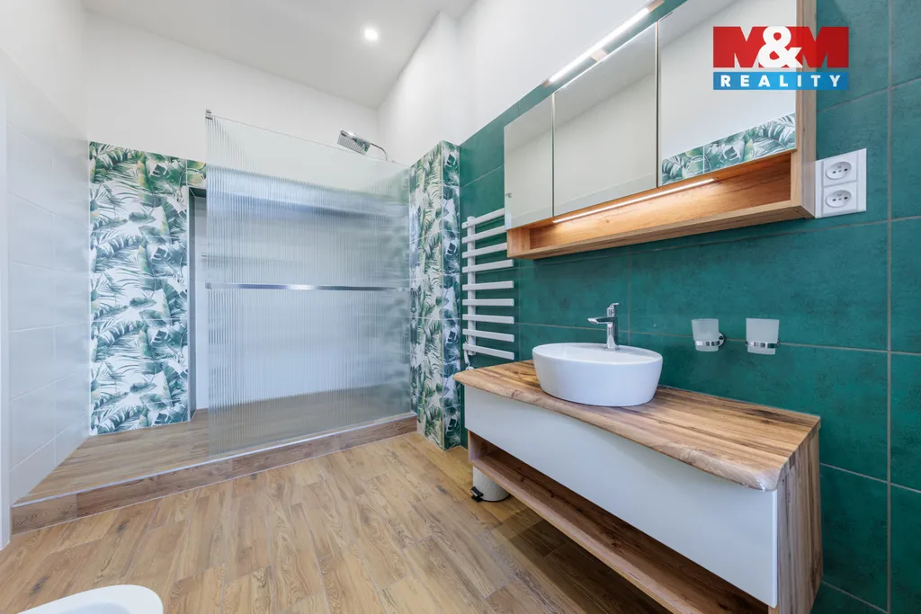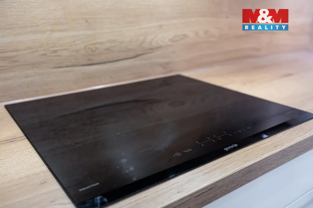 Dispozici tvoří prostorná předsíň, rohový obývací pokoj s okny na sever a západ a francouzským oknem na jediný balkon v domě, moderní kuchyně s vestavnými spotřebiči (myčka, pračka, sušička, varná deska, trouba, mikrovlnná trouba, digestoř), ložnice s velkými vestavnými skříněmi, nadstandardní koupelna se sprchovým koutem, WC a bidetem a technická místnost s boilerem. V celém bytě je elektrické podlahové vytápění a použity kvalitní materiály. Součástí ceny je kuchyňská linka se spotřebiči, ostatní nové vybavení lze odkoupit za 150.000 Kč.