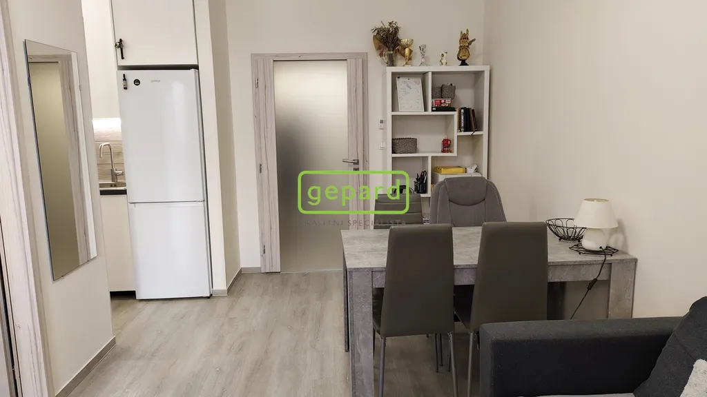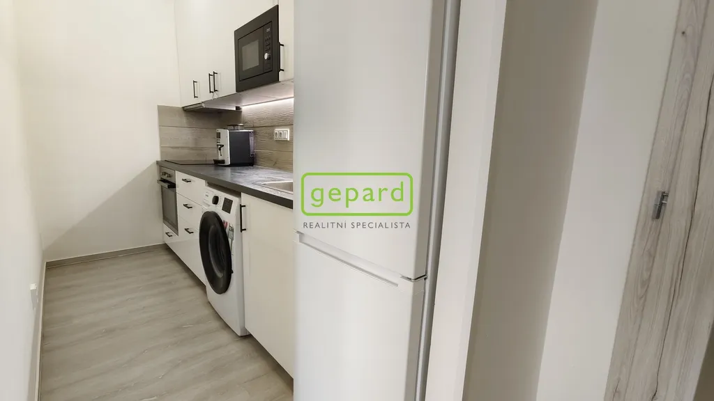Byt o dispozici 2+kk je tvořen obývacím pokojem (15,38 m2) s kuchyňským koutem (4,71 m2), ložnicí (10,73 m2), koupelnou se sprchou a WC ( 3,72 m2) a předsíní (2,67 m2). Byt je vybaven kuchyňskou linkou se sklokeramickou varnou deskou, elektrickou troubou, mikrovlnnou troubou, digestoří, lednicí s mrazákem a pračkou, jinak je byt nezařízený ( nábytek na fotografiích není součástí vybavení).
