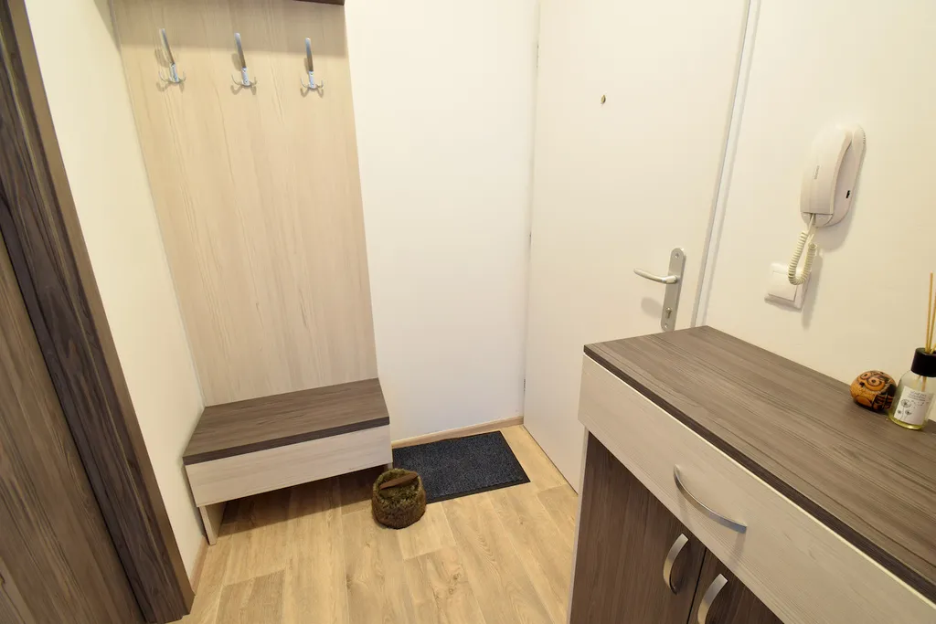 Výhodou bytu je, že k němu náleží i parkovací stání před domem, které je v ceně.