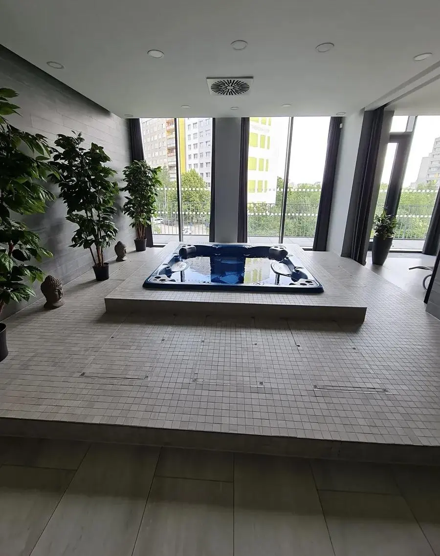 Byt je kompletně vybaven nábytkem a spotřebiči. Dominantou obytného prostoru je moderní rozkládací sofa s integrovanou manželskou postelí, která umožňuje efektivní využití prostoru. Kuchyň je plně vybavena, koupelna disponuje vanou a podlahovým vytápěním. K bytu náleží balkon o velikosti 3 m a sklepní kóje.