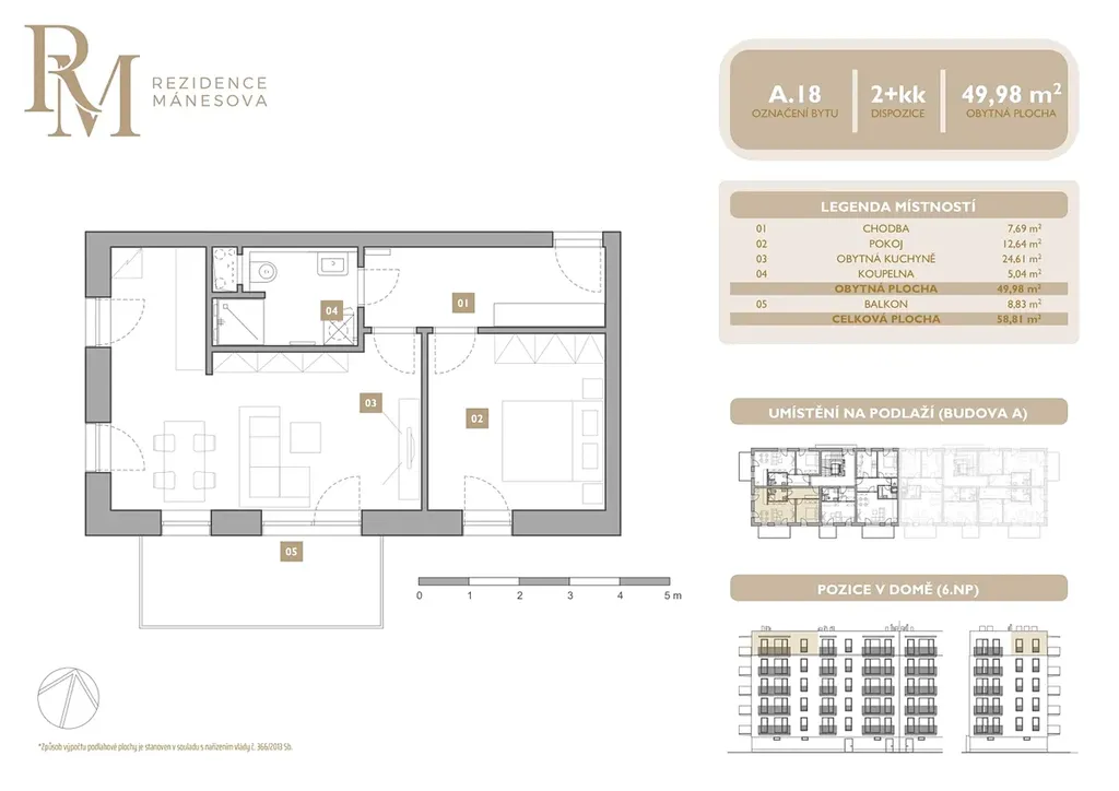 Součástí prodeje je nutnost zakoupení venkovního parkovacího stání, k bytu lze dále dokoupit sklepní kóji. Rezidence se nachází v klidné části města s kompletní občanskou vybaveností – obchody, školy, restaurace i zastávka veřejné dopravy jsou v docházkové vzdálenosti. Byty 2+kk kombinují kvalitní zpracování, příznivou cenu a moderní styl bydlení. Dokončení výstavby 12/2026.