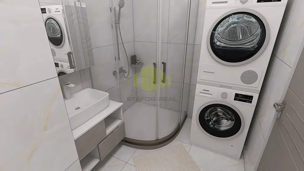 Byt se nachází v 4. nadzemním podlaží, má podlahovou plochu 38,44 m² a disponuje prostornou lodžií o výměře 11,06 m², přístupnou z obývacího pokoje. Celková plocha bytu činí 49,5 m². Byt je orientován na západ a jeho dispozice zahrnuje obývací pokoj s kuchyňským koutem, ložnici, vstupní halu, velkorysou šatnu, koupelnu a samostatné WC.