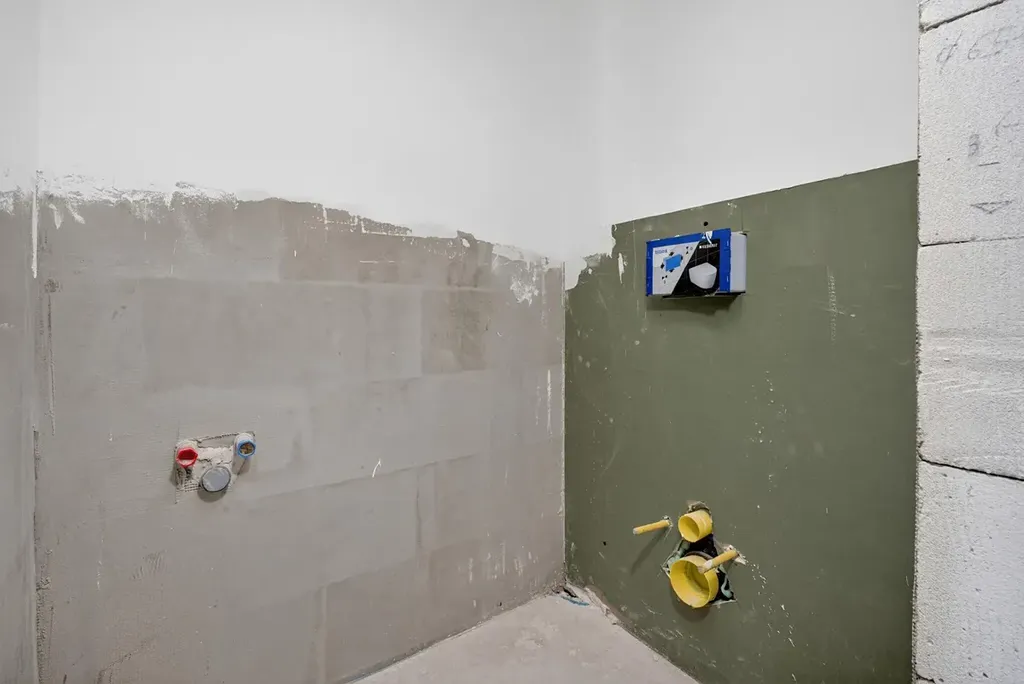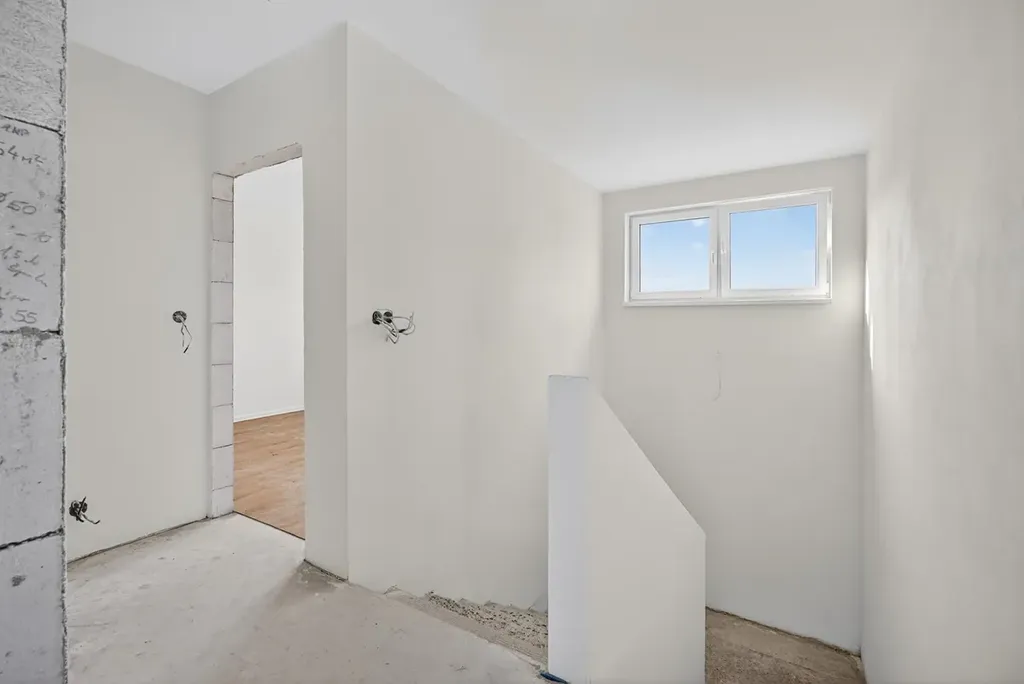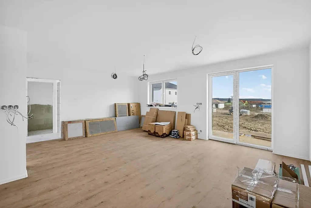 Interiér je připraven k dokončení, což novému majiteli umožňuje zvolit si obklady, sanitu i kuchyň dle vlastního vkusu a rozpočtu.