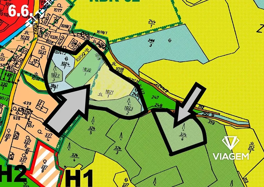 - Parcelní číslo 2166 (7514 m², 50% podíl, LV 786)
