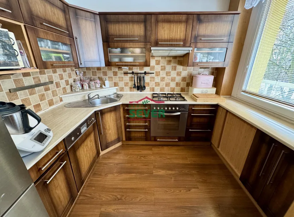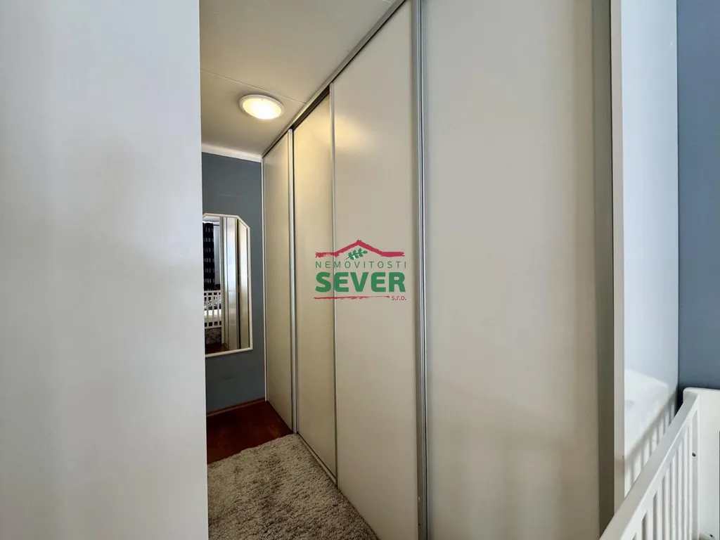 Nemovitosti SEVER vám zprostředkují koupi bytové jednotky s dispozicí 4+1 s lodžií v osobním vlastnictví v Mostě v ul. V. K. Klicpery. Bytová jednotka s plochou 83 metrů čtverečních se nachází ve třetím nadzemním podlaží panelového domu s eurovýtahem, situovaná v klidné části města. Byt prošel kompletní rekonstrukcí a skládá se z předsíně, chodby, dvou dětských pokojů, ložnice s vlastní šatnou a vstupem do lodžie, společně řešené koupelny s toaletou, kuchyně a obývacího pokoje propojeného s jídelním koutem. Rekonstrukce bytu zahrnuje elektroinstalaci v mědi, rozvody vody a odpadů, zděné jádro se sociálním zařízením v keramickém obkladu, kuchyňskou linku s vestavěnými spotřebiči, podlahy v celém bytě, snížené stropy s bodovým osvětlením v chodbě a koupelně, dřevěné obložení radiátorů v kuchyni, vestavěné skříně v dětských pokojích a ložnici, interiérové dveře a rolety den/noc v obývacím pokoji. Nadstandardem bytu je koupelna vybavená vanou i samostatným sprchovým koutem. Dům, ve kterém se byt nalézá, prošel revitalizací fasády včetně zateplení, střechy, oken, vchodových dveří a výtahů. V domě je k dispozici společný uzamykatelný prostor (kolárna). K domu náleží také dětské hřiště hned za domem. Veškerá občanská vybavenost je k dispozici v blízkém dosahu, centrum města vzdálené pouze 7 minut jízdy automobilem. Parkování je možné přímo u domu. V případě zájmu vám zajistíme optimální variantu financování na tuto nemovitost za zvýhodněných podmínek pro naše klienty.