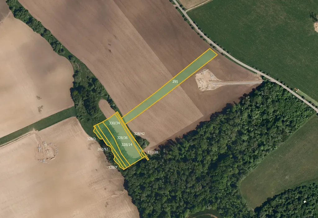 Jedná se o parcely č.: 262/92, 295, 328/3, 328/7, 328/14, 328/36, 328/42, 330/28 a 330/34.