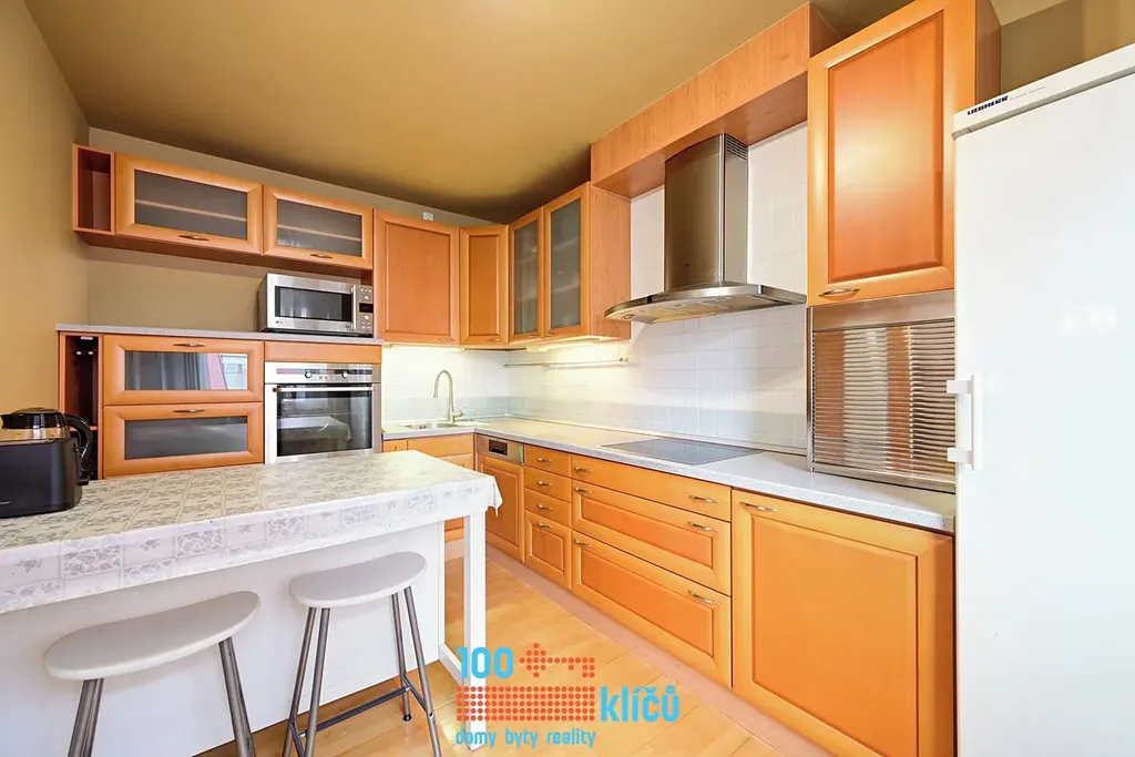 Byt se skládá z velkorysého obývacího pokoje o výměře 29 m², ze kterého se vstupuje na prostorný rohový balkon o ploše 10 m² s orientací na jihovýchod. Na obývací pokoj navazuje samostatná, plně vybavená kuchyně (11 m²) s myčkou, troubou a lednicí. Komfortní bydlení doplňuje ložnice o ploše 11 m² a koupelna s vanou a pračkou. Toaleta je oddělená. Interiér je osazen kvalitními dřevěnými podlahami a nabízí dostatek úložných prostor díky vestavěným skříním na míru v předsíni i ložnici.