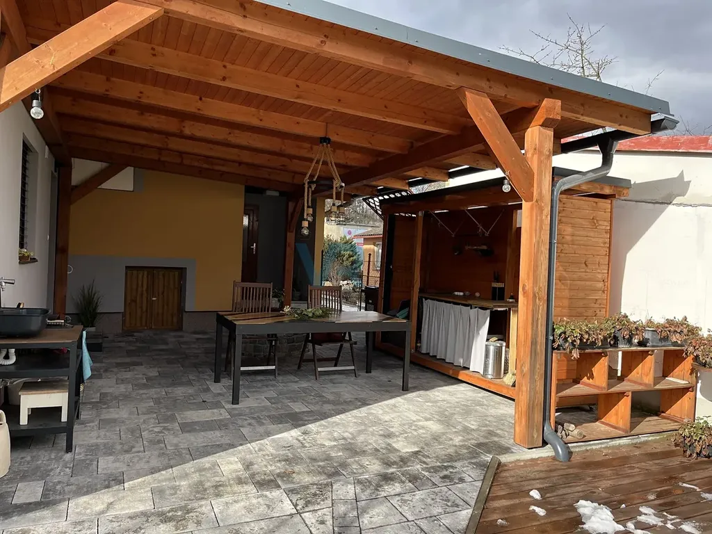 K domu náleží garáž, skleník a hospodářská budova.