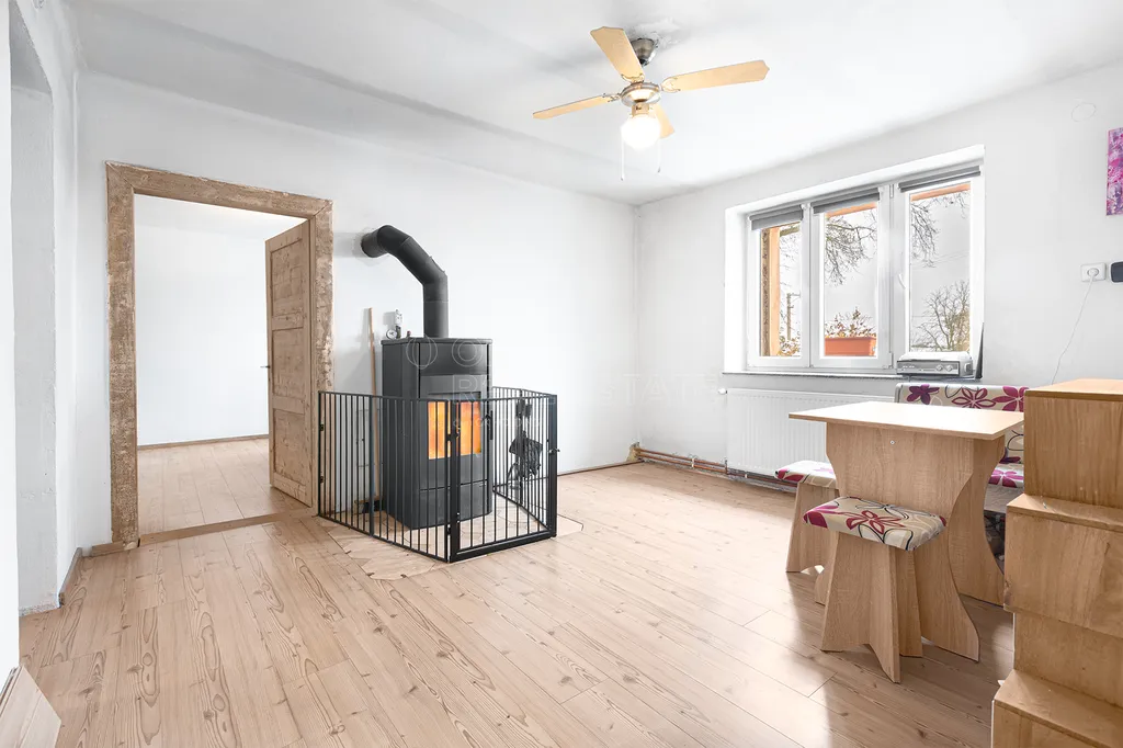 Zastavěná plocha nemovitosti činí 220 m², zatímco plocha parcely je 274 m² a tvoří dvůr. Dům zvenku je před rekonstrukcí, má ale nová plastová okna. Dům je částečně podsklepený v ploše 5m2. Vnitřní obydlená část je po rekonstrukci - koupelna, WC, plovoucí podlahy, parapety. Dům je prodáván bez vybavení.