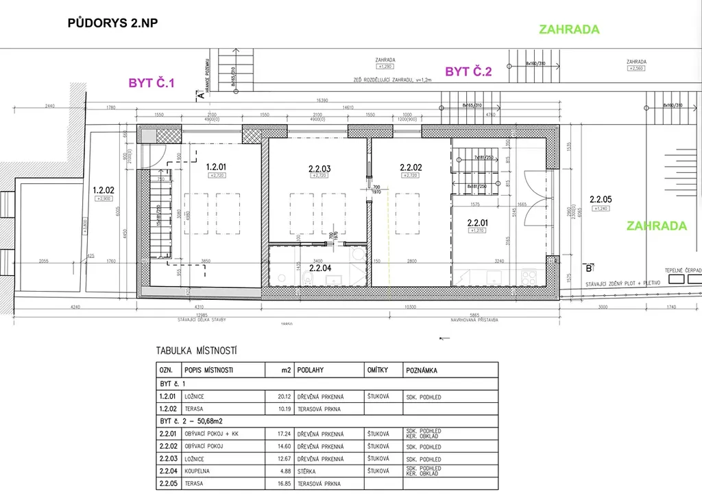 - realizace dvou samostatných bytových jednotek,