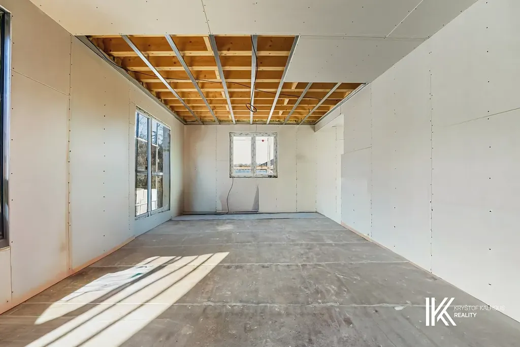 Jedná se o difuzně uzavřenou, zateplenou dřevostavbu s rámovou konstrukcí z KVH hranolů, opláštěnou deskami Fermacell a s izolací o tloušťce 140 mm. Fasáda je zateplena polystyrenem o síle 200 mm a opatřena silikonovou omítkou v jednolitém moderním odstínu. Střechu pokrývá betonová krytina Betonpres v uhlově černé barvě. Okna značky REHAU v antracitovém provedení jsou osazena izolačními trojskly, střešní okno Velux je rovněž v trojskle s bílým PVC rámem. Vchodové dveře jsou hliníkové se zatepleným rámem. Součástí standardu je také příprava na předokenní žaluzie.