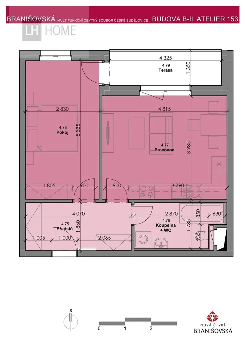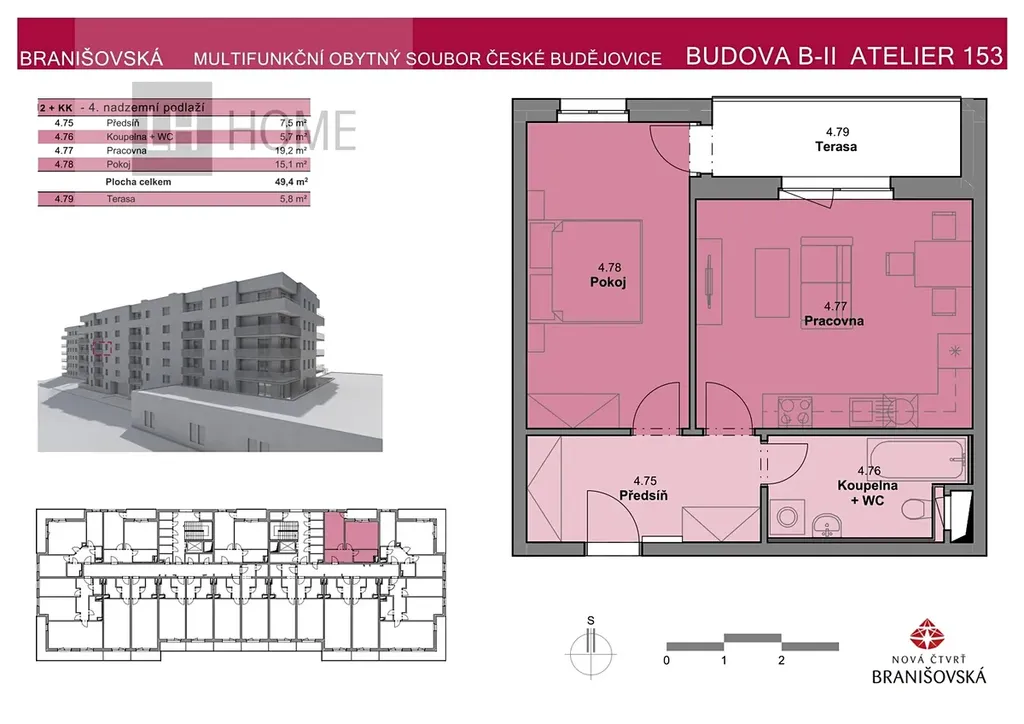 Nabízíme prodej bytu 2+kk o výměře 49,40 m² s balkonem 5,8 m² v moderním rezidenčním projektu Nová čtvrť Branišovská v Českých Budějovicích.