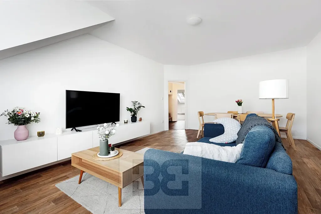 Hlavní přednosti bytu: Byt je opravdu prostorný, vzdušný a světlý. Díky umístění v podkroví nabízí soukromí bez rušivých pohledů zvenčí a velkorysou prostorovou volnost. Energetická třída budovy B a instalovaným solární kolektory na ohřev vody snižují provozními náklady.