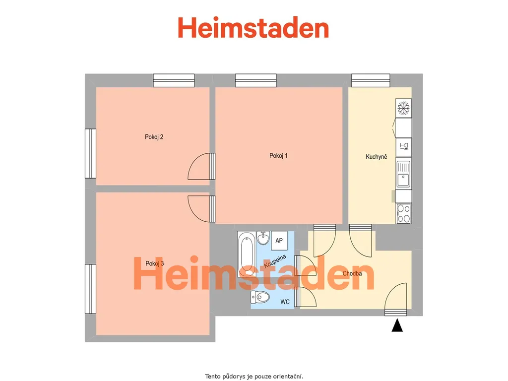 Koupelna je laděna do příjemného meruňkového odstínu a vybavena vanou – perfektní místo pro odpočinek po náročném dni.