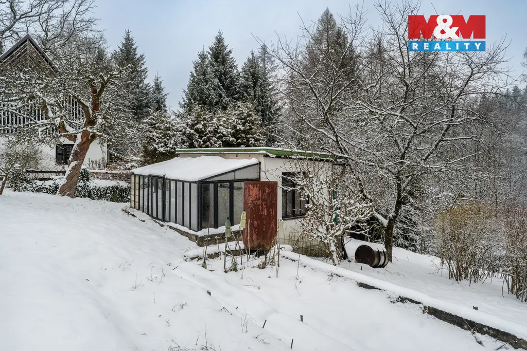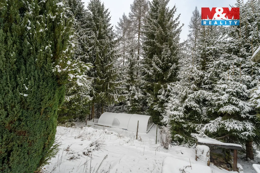 Součástí je rozsáhlý pozemek o celkové ploše 8 995 m² se saunou, vybetonovaným bazénem, zahradním domkem se skleníkem a dalšími vedlejšími stavbami včetně dílny, garáže a sklepa. Parkování je možné přímo na pozemku, příjezd po zpevněné obecní komunikaci.