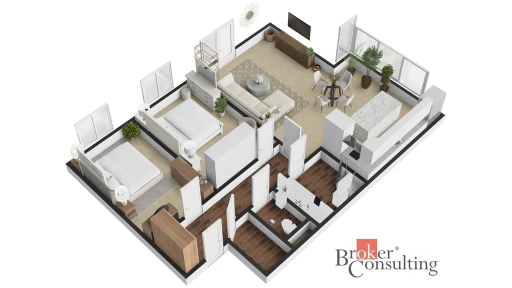 Byt je krásně světlý díky dostatku velkoformátových oken a působí velmi příjemným, vzdušným dojmem. Ideální volba pro rodinu, pár i jako investice.