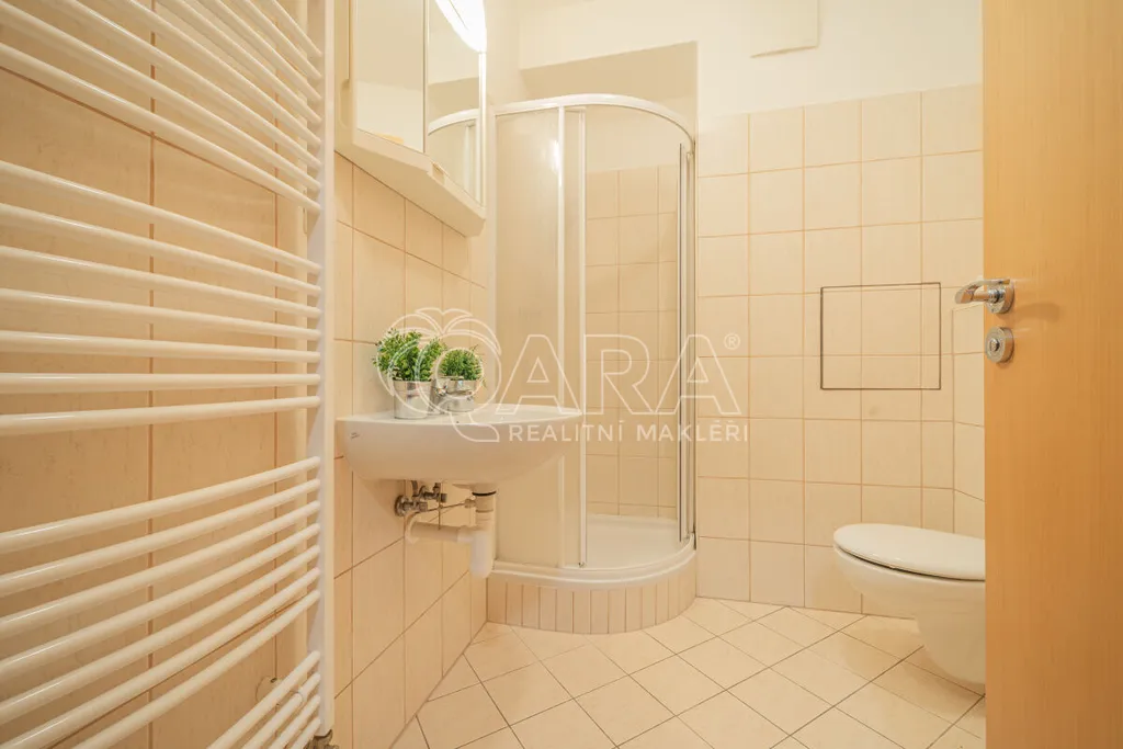 Byt se nachází v přízemí bytového domu z roku 2006. Dispozice je velmi praktická a efektivně využívá každý metr. V předsíni je velká šatní skříň a vstup do koupelny se sprchovým koutem a toaletou. Hlavní obytná místnost nabízí kuchyňský kout a dostatek prostoru jak pro spaní, tak pro obývací část.