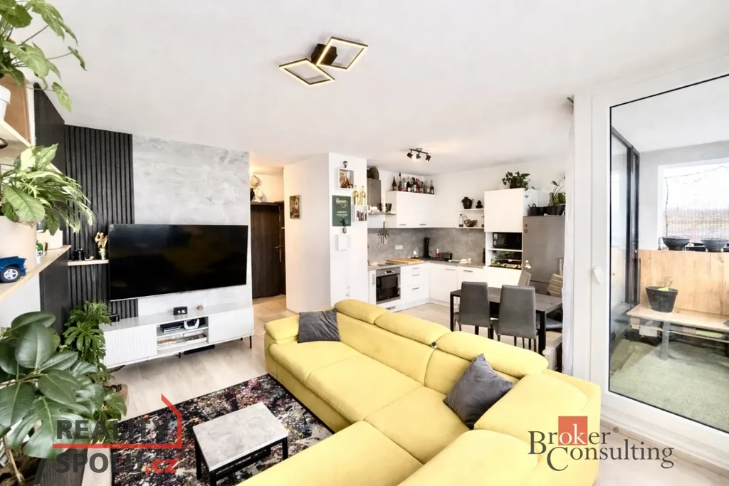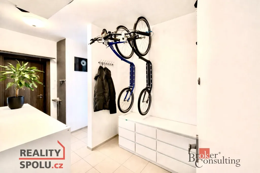 Dispozici tvoří obývací pokoj s kuchyňským koutem a vstupem na lodžii, samostatná ložnice, koupelna s WC a předsíň. K bytu náleží sklepní kóje a garážové parkovací stání přímo v domě. Samozřejmostí je výtah. Energetická třída B zajišťuje nízké provozní náklady.