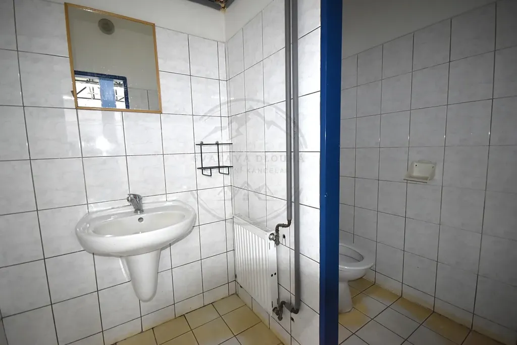 • montážní hala o velikosti 117,45 m², dříve využívaná jako autodílna (zvedák lze odstranit a vznikne tak velký otevřený prostor vhodný i pro prodejnu),