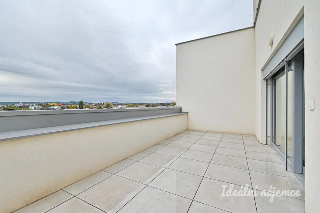 K dlouhodobému podnájmu nabízíme moderní byt o dispozici 3+kk v klidné lokalitě. Byt o celkové výměře 97 m² + 35 m² balkonová plocha s terasou se nachází v novostavbě na 5. podlaží domu s výtahem. K bytu náleží dva prostorné balkony, terasa s krásným výhledem až na Pálavu, sklep a dvě parkovací místa.