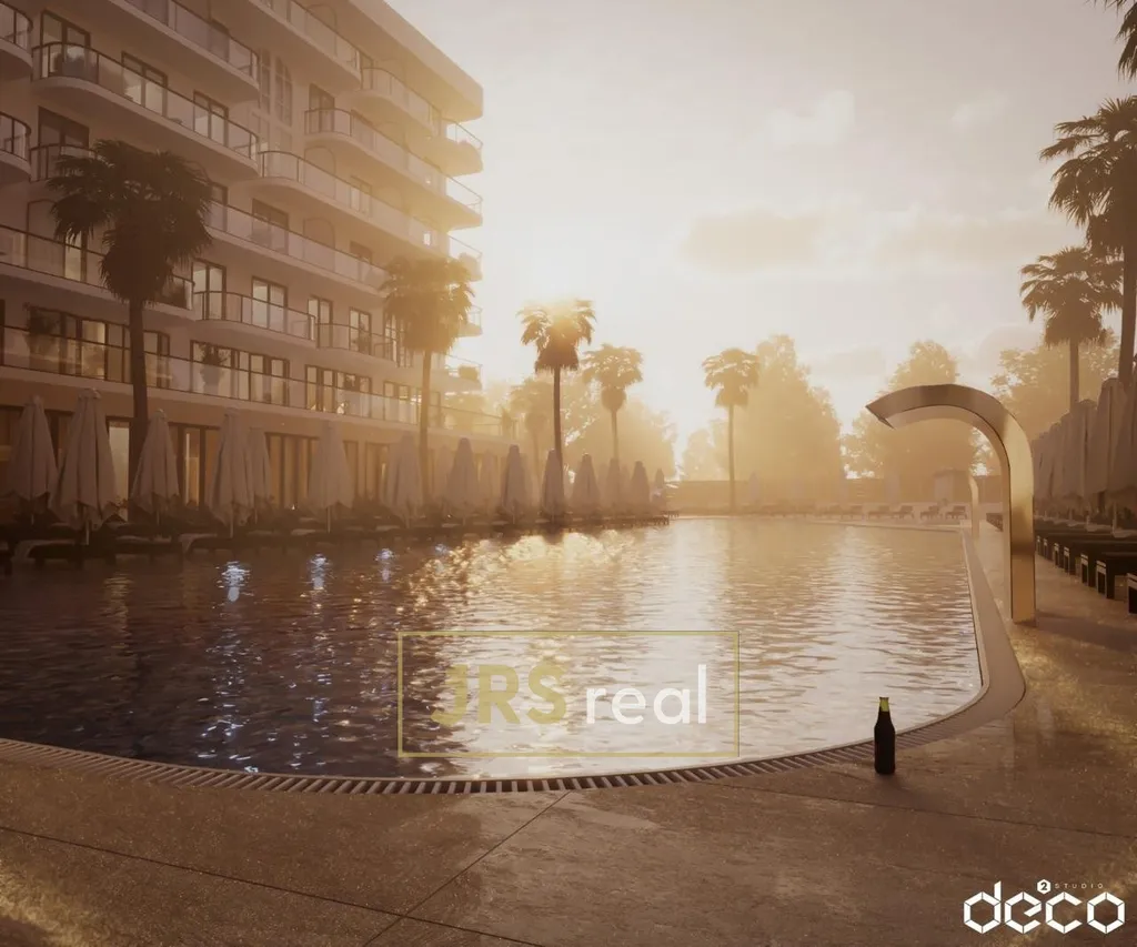 Tento moderní apartmán 2+kk se nachází v komplexu s aquaparkem, restaurací a hotelovými službami, což z něj činí skvélé místo pro trvalé bydlení i rekreační pobyty. Apartmán je situován ve 6. patře a má moderní dispozice – otevřený obývací pokoj s kuchyní, ložnici, koupelnu a balkon s výhledem na moře.