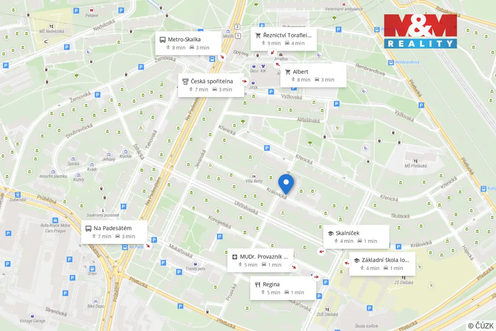 Vzhledem k blízkosti stanice metra Skalka, vlakového nádraží a několika stanic autobusů MHD je výborná i dopravní dostupnost.