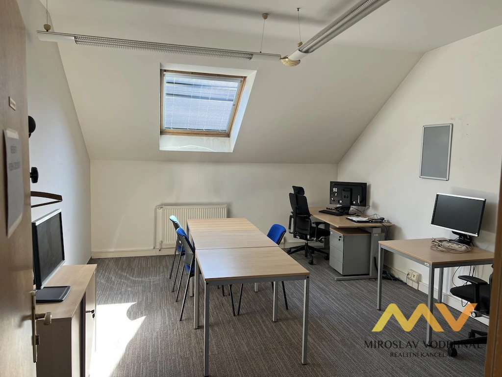 Dispozici tvoří tři samostatné kanceláře, z toho jedna velká a vhodná jako jednací (konferenční) místnost, dále zázemí v podobě pánských a dámských toalet, kuchyňky a úklidové komory. Prostory jsou umístěny v udržovaném zděném domě, který působí reprezentativně a vhodně pro firemní zázemí.