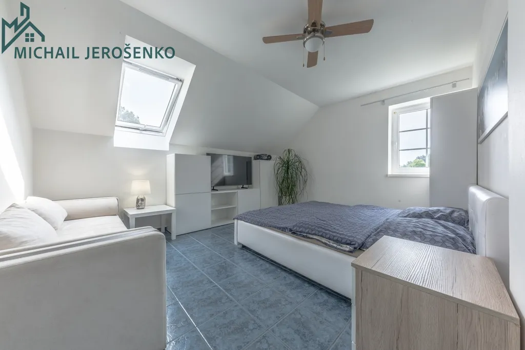 • patro: tři samostatné pokoje, koupelna s vanou i sprchovým koutem, další samostatná toaleta.