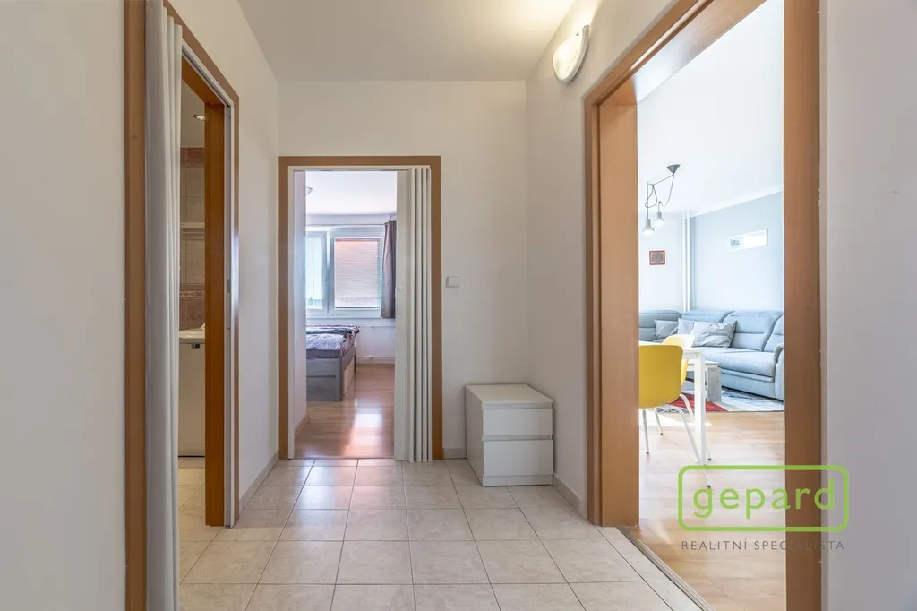 Dispozice: vstupní chodba, ložnice, obývací pokoj s kuchyní , koupelna s WC. V koupelně je vana. Dům je po revitalizaci (zateplení, fasády, výtahu, střechy). Měsíční nájem činí 18.500Kč plus záloha na služby a energie 5.500 Kč. K tomu garážové stání s nájmem 1300 Kč plus poplatek za služby 500 ,- Kč /měsíčně. Pro majitele kauce ve výši dvou měsíčních nájmů. Byt je volný od 1.03.2026