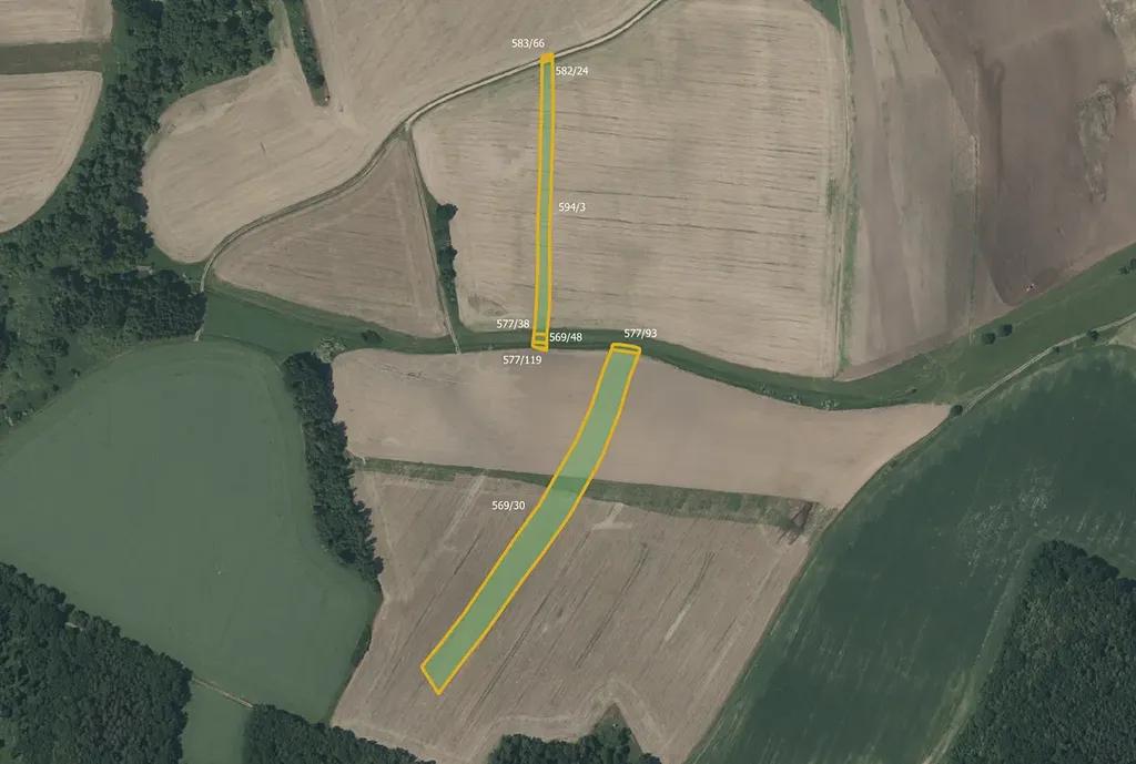 orná půda: parc. č. 569/30, 569/48, 583/66, 583/82, 590/22, 590/25, 594/3, 687/55 - celkem 27 825 m²