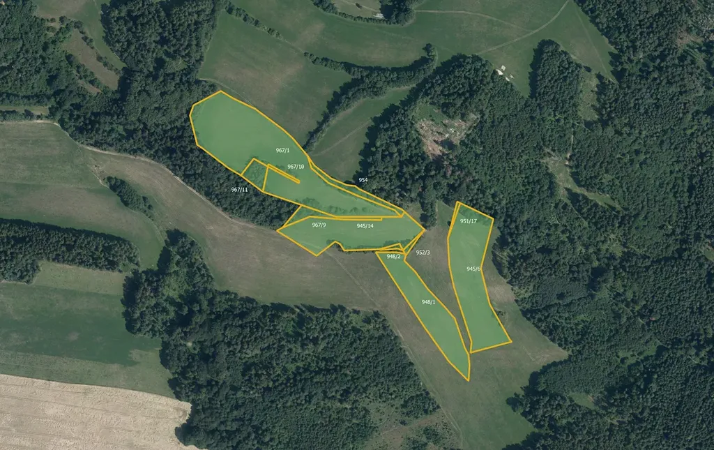 945/6, 945/14, 948/1, 948/2, 967/1, 967/11 - trvalý travní porost,