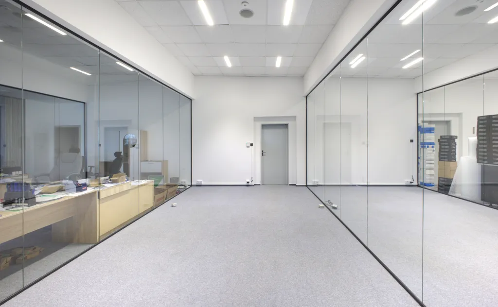 Kancelářské prostory se nacházejí v přízemí a jsou rozděleny na jednotlivé kanceláře moderními skleněnými příčkami. Vytápění je podlahové. Automatický systém Loxone ovládá topení, řídí žaluzie, osvětlení i audio. Pro každou kancelář je možné individuální nastavení. Objekt je elektronicky zabezpečen a napojen na PCO.