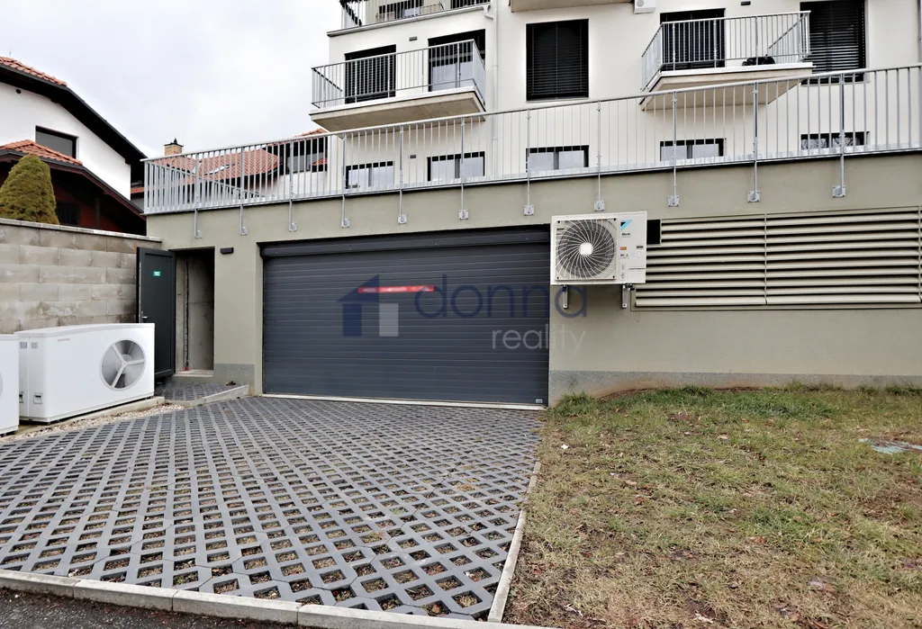 Součástí nájmu je také parkovací místo v garáži a sklep o ploše 3 m2 v suterénu budovy. Další možnost parkování je před domem, kde nejsou modré zóny. Vjezd z ulice Bělohorská do garáže pomocí výtahu, z ulice Na Břevnovské pláni již standardně garážovými vraty.