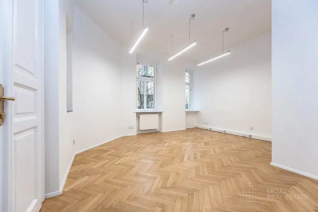 Prostory se nacházejí v klasickém městském domě s výtahem a poskytují příjemné pracovní prostředí mimo běžné administrativní komplexy. Interiéry disponují novými parketovými podlahami a moderním osvětlením. Dispozice umožňuje flexibilní využití podle potřeb nájemce a je vhodná pro menší či středně velkou společnost hledající samostatné a klidné sídlo.