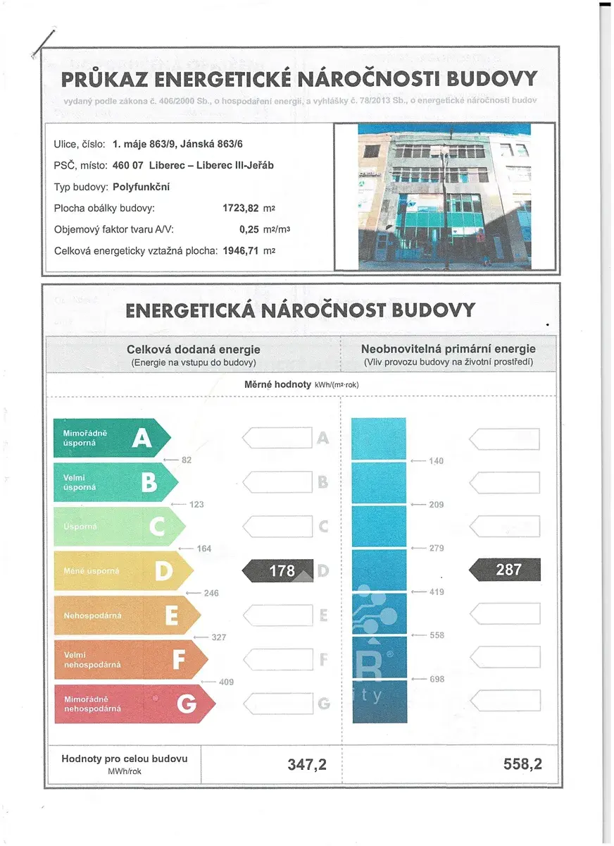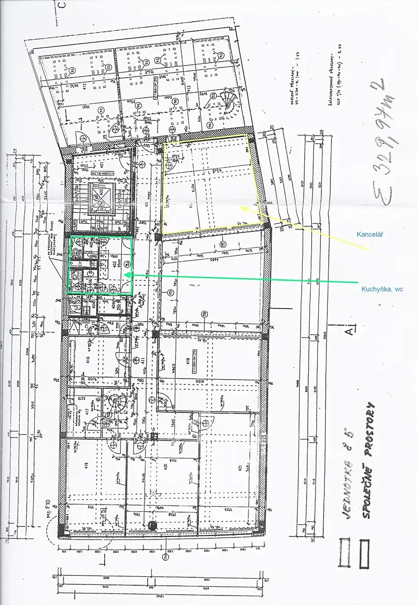 Není vhodné pro subjekty potřebující vodu přímo v kanceláři. Výhoda - okna směřují do klidného dvora.