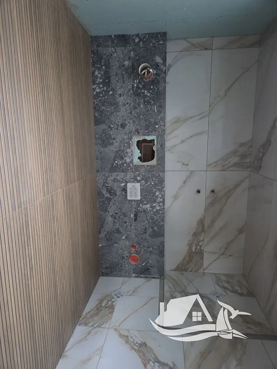 Dům je dokončen na klíč, přičemž finální materiály si můžete zvolit podle svého vkusu. Součástí ceny je první etapa podlahového vytápění s tepelným čerpadlem, tři parkovací místa, vysoký standard obkladů, interiérové dveře a energeticky úsporná okna s trojsklem a kvalitním německým kováním. Stavba je ve fázi Akt 15 a celý komplex je před finálním dokončením.