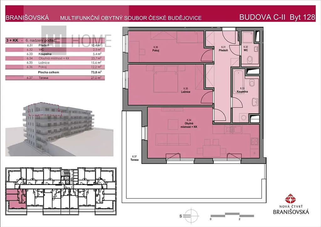 V projektu Nová čtvrť Branišovská v Českých Budějovicích nabízíme k prodeji moderní byt 3+kk o podlahové ploše 73,8 m² s prostornou terasou o velikosti 27 m².