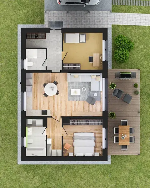 Důraz klademe na osvědčené a kvalitní materiály i technologie. Díky tomu mají domy dlouhou životnost a nízké náklady na provoz.