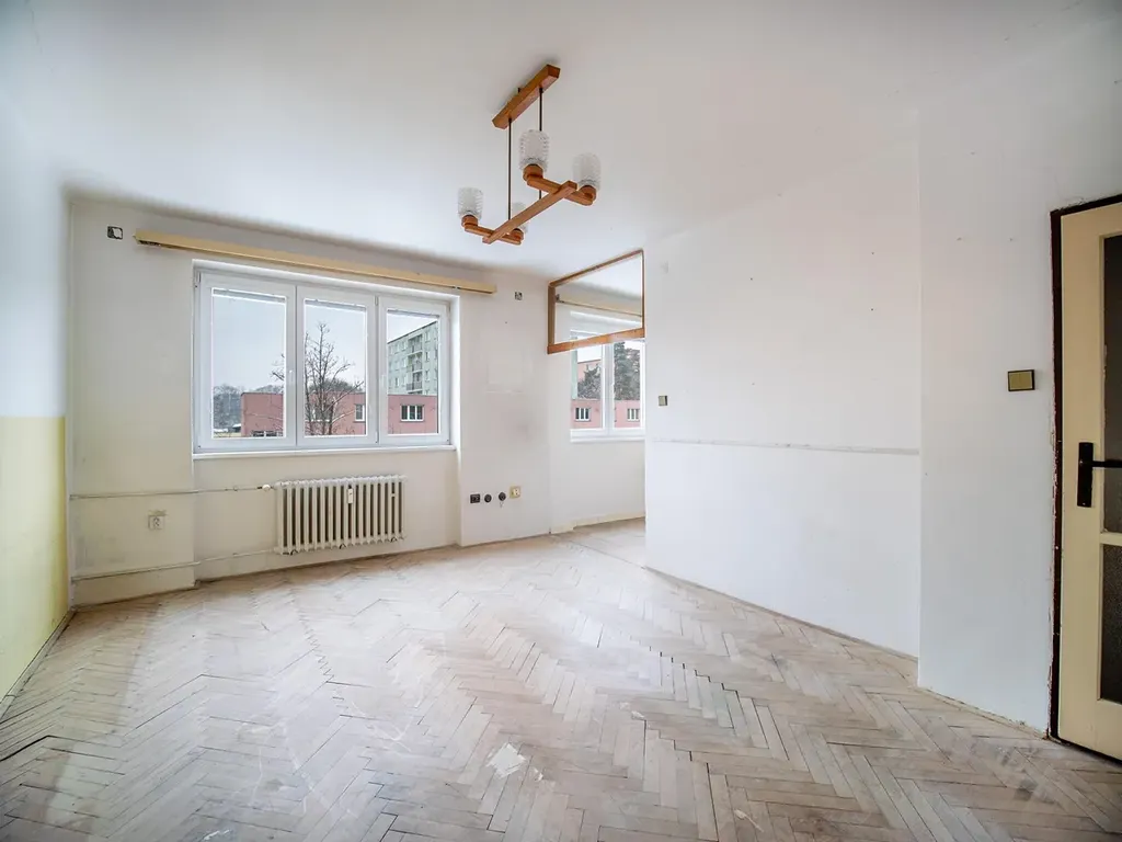Byt má 52 m2 celkové plochy, a to včetně dvou sklepů (celkem 4 m2) a nachází se ve druhém podlaží domu, okna jsou plastová, orientovaná na jih ke komunikaci. Obývák má 18 m2, ložnice 16 m2 – tyto místnosti dělí dvoje dveře a chodba bytu, takže v ložnici neuslyšíte, jak v obýváku je puštěná televize.