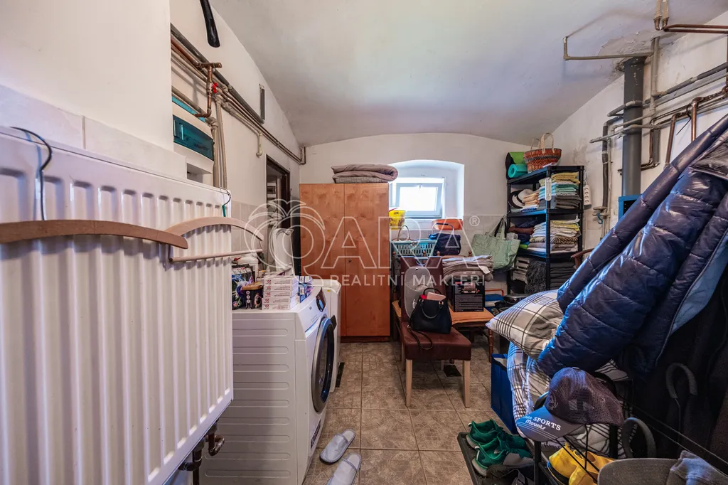 Pěkné že? Jak jsem psala, dům je vyňuňán do posledních detailů. Pojďme dále. Jsme stále v přízemí, kde je umístěna i velká technická místnost s pračkou a sušičkou, sloužící i jako sušárna a částečně sklad. Z předsíně se vchází do sklepení domu. a pak do prvního patra. Velká předsíň propojuje byt 3+kk, koupelnu, toaletu a malou spižírnu a zároveň se vstupuje na prostornou půdu, kde je možnost vestavby a dalšího případného bytu.