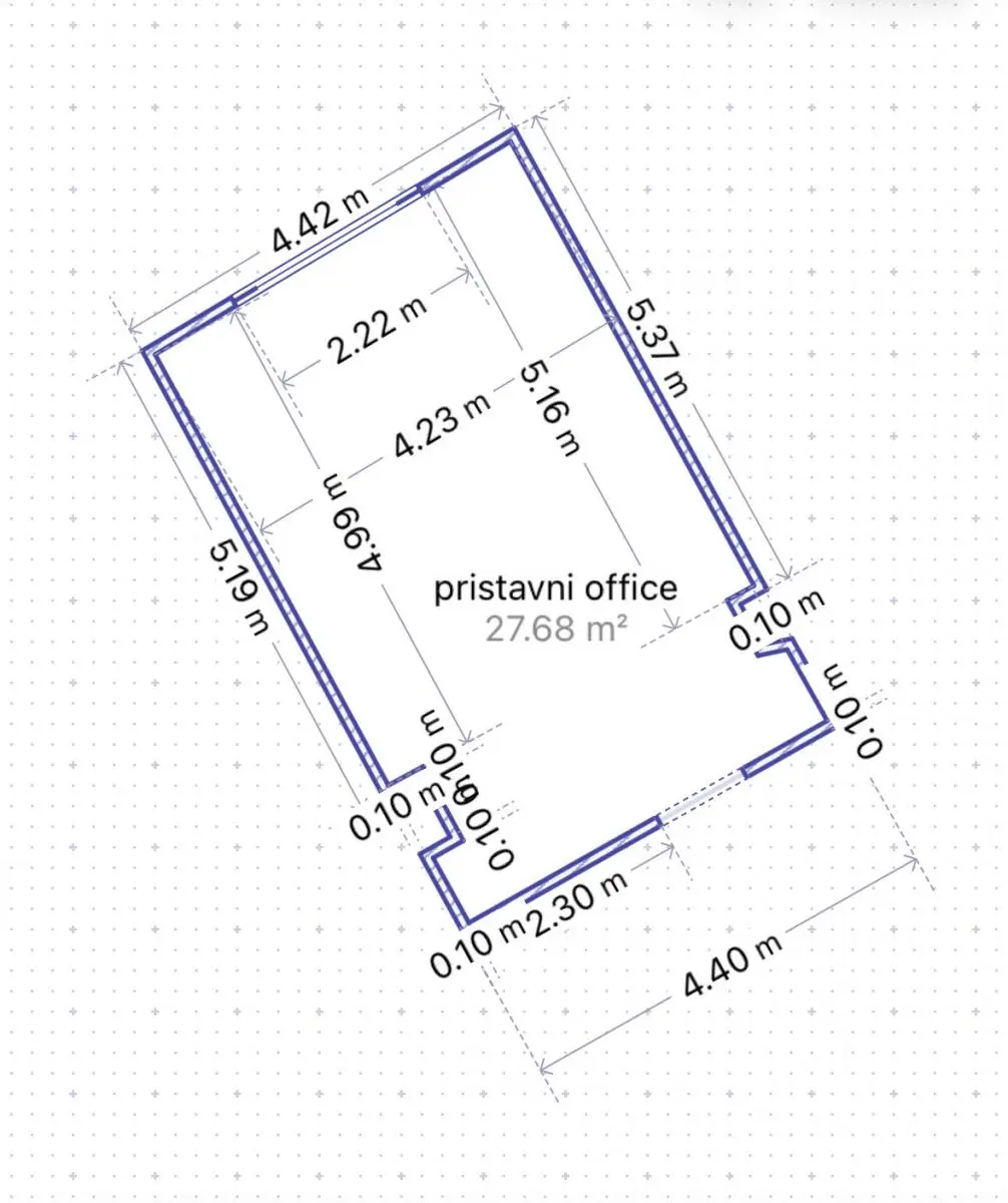 Nezařízená kancelář k pronájmu o celkové rozloze 28 m2 se nachází v 2. patře administrativní budovy na Praze 7 - Holešovice. Prostor se stává z jedné místnosti, dále mají nájemníci možnost využít společnou kuchyňku nebo toalety. Na podlahách jsou koberce. Topení ústřední. Ostraha budovy je zabezpečena 24 hodin denně a navíc je střežena kamerových systémem. Vstup do hlavní budovy je možný přes recepci.