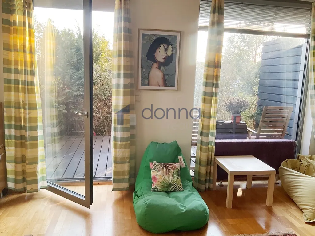 kuchyňská linka s jídelním barovým pultíkem a spotřebiči včetně lednice, skříňky, psací stůl, oddělené lůžko na spaní. V koupelně je vana, toaleta je samostatná. V bytě je také šatna. Součástí je prostorná terasa o velikosti 17m².