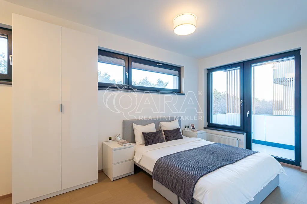 Nabízím k dlouhodobému pronájmu zcela nový byt 2+kk o velikosti 51,2 m² s balkonem. Byt se nachází v 3. NP novostavby v projektu Malešický háj. Okna jsou orientována na severovýchod a mají venkovní elektrické žaluzie, které zajišťují komfortní regulaci světla. K bytu náleží také sklepní kóje.