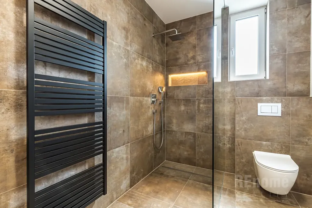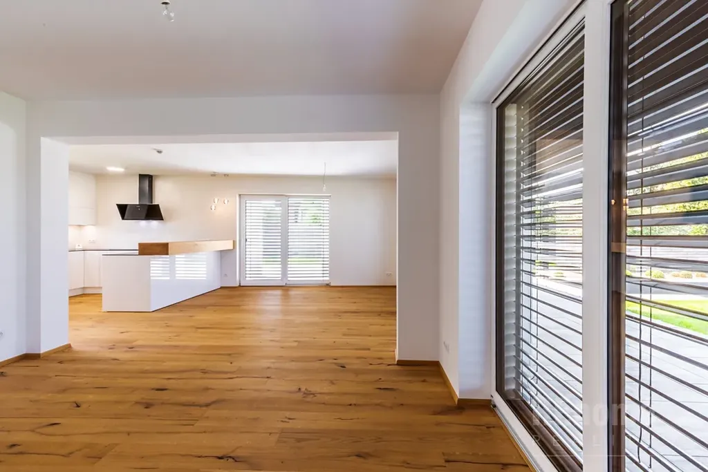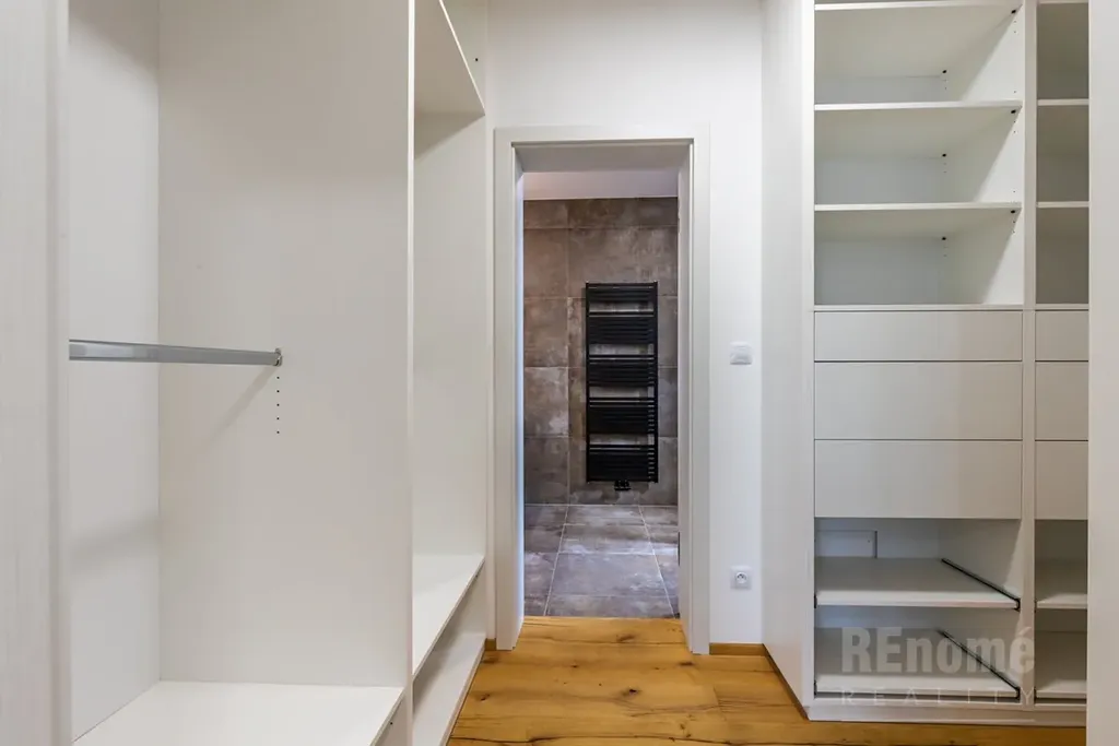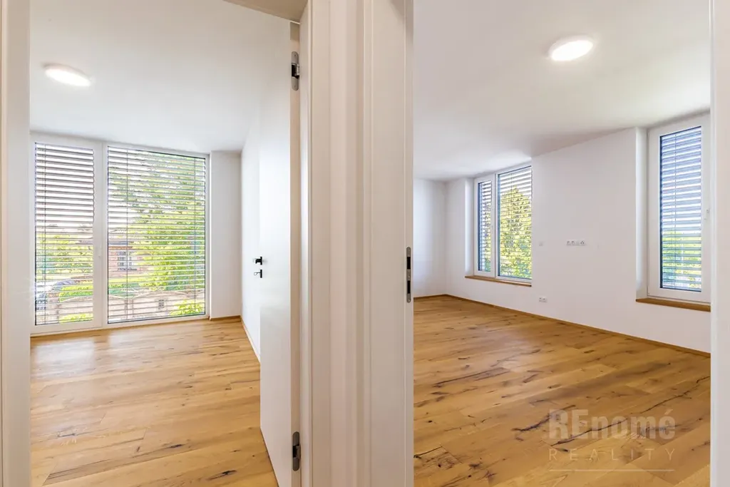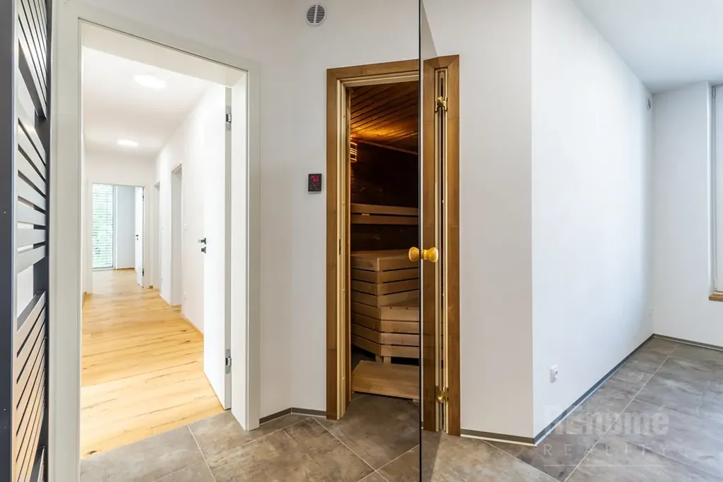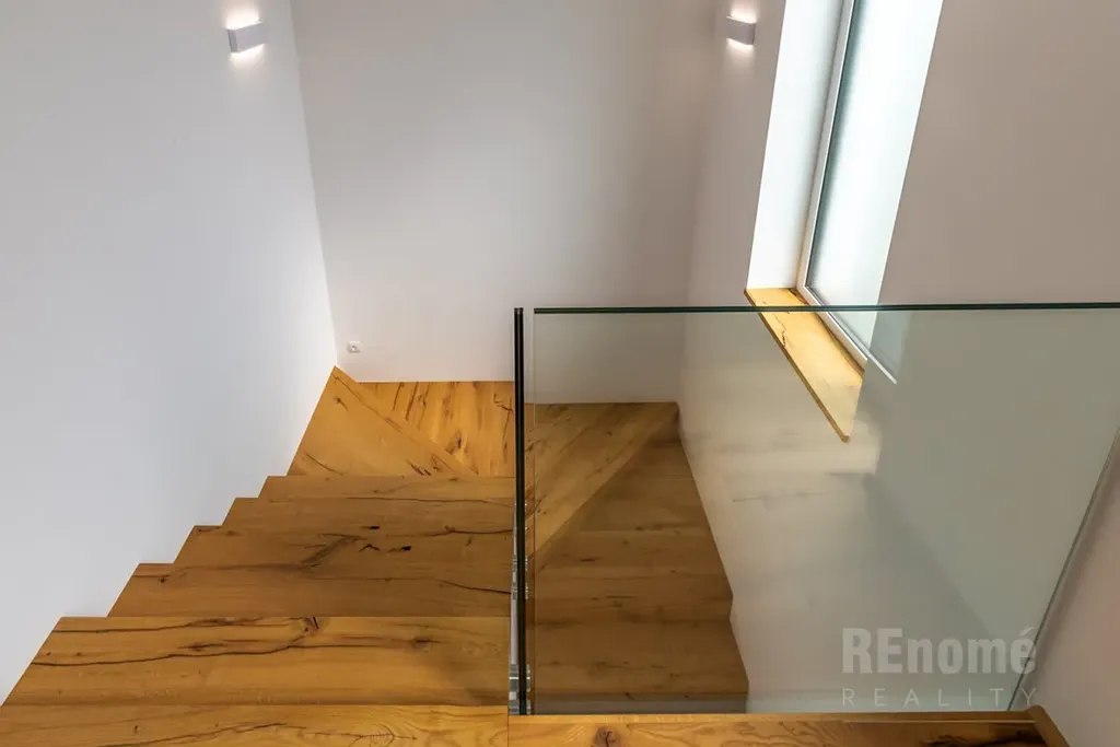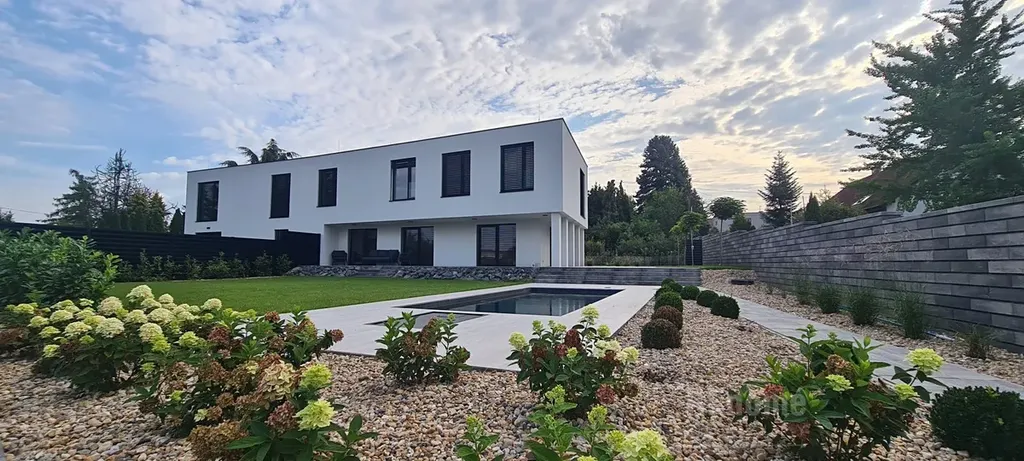 Od 01.03.2026 Vám nabízíme k pronájmu novostavbu rodinného domu (kolaudace 2023) v Jesenici, okr. Praha – západ. Moderní dům s dispozicí 5+kk (200 m2) je proveden ve vysokém standardu. Umístěn je v klidné části obce mezi rodinnými domy, přesto jen kousek od centra obce. Je obklopen okrasnou zahradou se závlahou (oproti fotografiím je již vzrostlá) o výměře 750 m2, na které se nachází bazén o velikosti 7x3x1,5m (vyhřívaný tepelným čerpadlem). Na spodní straně zahrady, za automatickou vjezdovou branou je umístěna garáž a venkovní parkovací stání. V 1.NP domu se nachází obývací pokoj s kuchyňským koutem (56 m2), ložnice (14 m2), koupelna s WC (6 m2), chodba s úložnými prostrory (11 m2), technická místnost (3,5 m2) a schodiště do 2.NP. Hlavní předností domu je jeho otevřenost do zahrady, z každé obytné místnosti i kuchyně je přístup na venkovní krytou terasu. V 2. NP naleznete ložnici (20 m2) se šatnou (6 m2) a koupelnou s WC (6m2), další 2 neprůchozí ložnice (23 a 15m2). Samostatná koupelna s oknem (18 m2) a sprchou je vybavena prostornou saunou zbudovanou na míru! Chodba nabízí velké množství úložných prostor - vestavěné skříně vyrobené na míru po celé své délce. Šatna u největší z ložnic je vybavena policovým systémem. Na patře je rovněž samostatné WC. Moderní prostorná kuchyně je vybavena všemi potřebnými spotřebiči (vestavná trouba, MW trouba, myčka, indukční varná deska, digestoř, lednice s mrazničkou). Velkoformátová okna jsou opatřena venkovními žaluziemi. Vytápění a ohřev teplé vody zajišťuje plynový kotel. Zabezpečovací system je samozřejmostí.